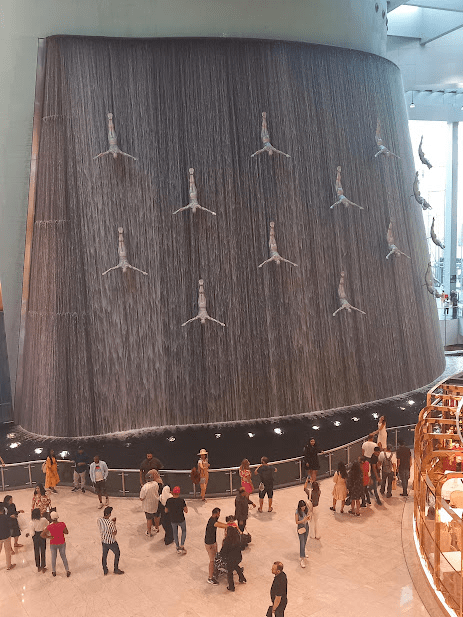 The next stop was to see the Dubai Mall waterfall which is iconic and you see a lot on Instagram and vlogs. Like the aquarium, I thought it was huge, but it was the details of the people and how it falls impressed me the most.