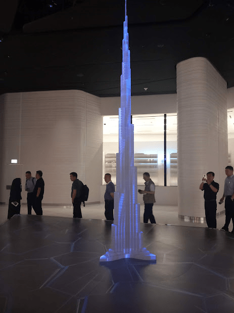 We booked the VIP tour for the Burj Khalifa, first, you enter a room where you are told about how high you go and the process of the tour. You then see a model of the tower and a brief history of how the tower is built. You then go through airport-style scanners before entering the first of two lifts to your designated floor.