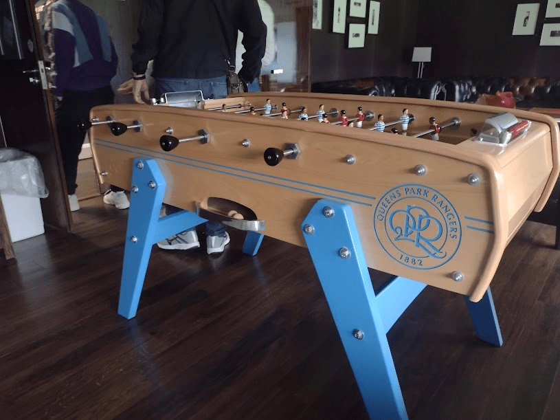 Next, it was off to see where they did the post-match interviews and the hospitality boxes. We got to see the different hospitality boxes in which you can sit and watch the match. They were fitted with bars, comfortable seats, large-screen TVs, and a QPR theme foosball table.